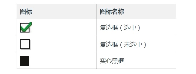 以下图标显示在菜单项旁边,这些图标支持用户在两个选项之间进行选择或者向用户表明有一个可提供两个选项的子菜单。
