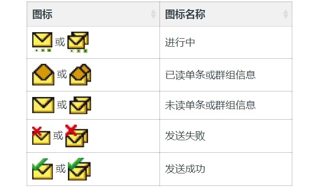 以下图标显示在显示屏右上角的“已发信息”文件夹中。