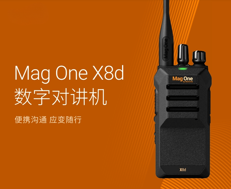 摩托罗拉Mag OneA8 DMR是一款入门级DMR对讲机,可提供简便、可靠且经济实用的通信解决方案。它模拟数字模式兼容,帮助企业逐步从模拟通信转变为数字通信,迈向更好的沟通品质和产品价值。