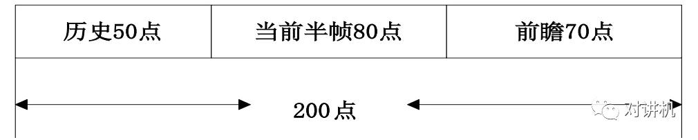 采用自相关方法求取基音周期,每次提取的窗长为200个点,其组成如下图所示。与整帧基音提取相同,子帧的基音周期也对应于自相关函数的极大值。预留子帧内5个极大值点作为备选基音周期,同时前瞻两个子帧,通过动态规划方法得到最终的基音周期。然后将窗向右移动80个点继续提取下一子帧的基音周期。