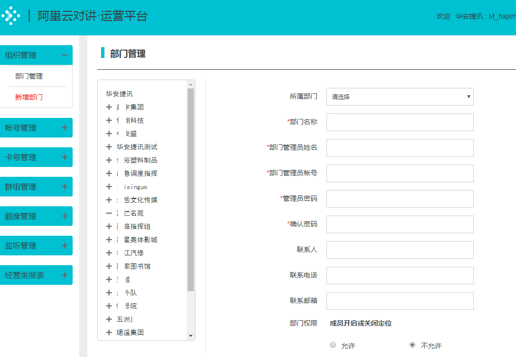 ②输入账号密码登陆后台,点击组织管理→新增部门